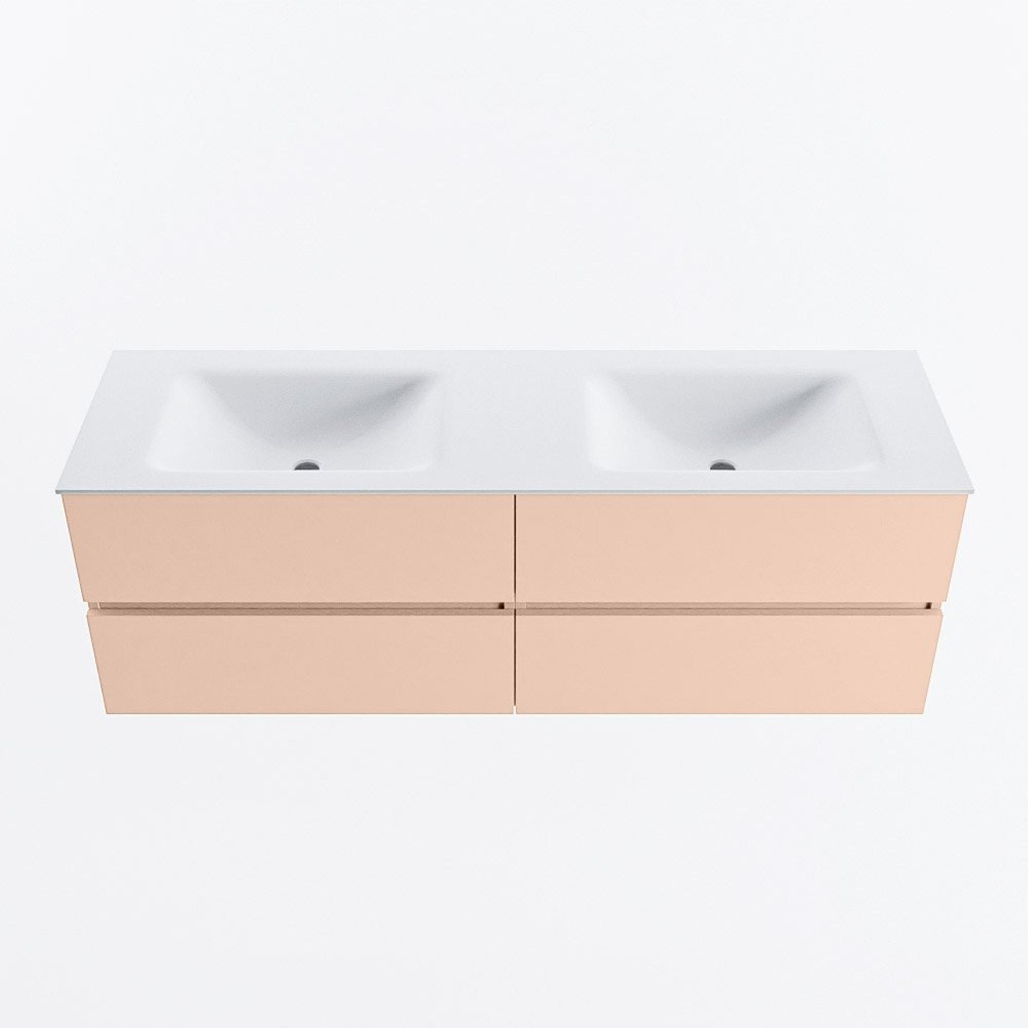 MONDIAZ VICA Ensemble meuble de salle de bains - 150cm - meuble bas rosee - 4 tiroirs - plan-vasque cloud double - sans trous de robinet - version haute 60cm - talc