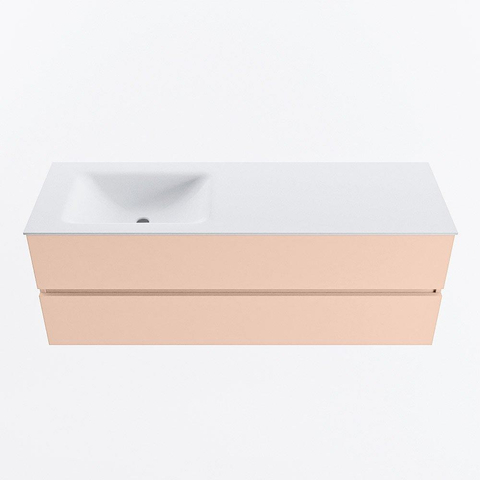 MONDIAZ VICA Ensemble meuble de salle de bains - 140cm - meuble bas rosee- 2 tiroirs - vasque cloud gauche - 1 trou de robinet - version haute 60cm - talc