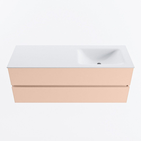 MONDIAZ VICA Ensemble meuble de salle de bains - 130cm - meuble bas rosee - 2 tiroirs - lavabo cloud à droite - sans trous de robinet - version haute 60cm - talc