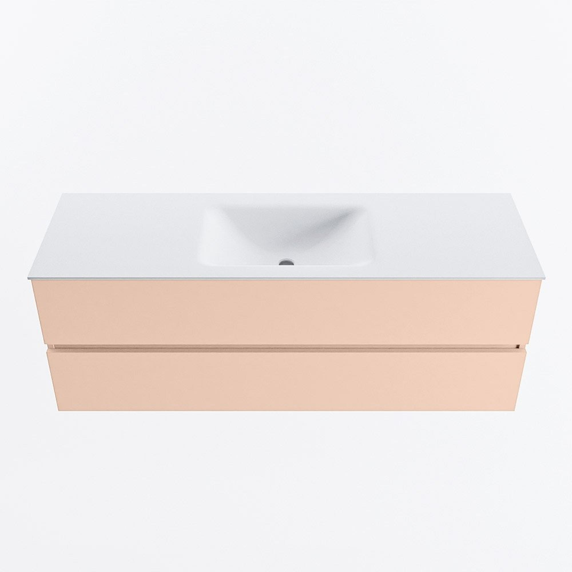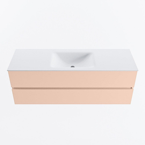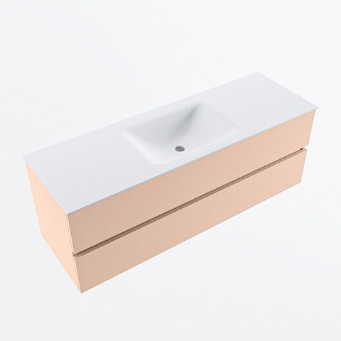 MONDIAZ VICA Ensemble meuble de salle de bains - 140cm - meuble bas rosee - 2 tiroirs - lavabo cloud central - sans trous de robinet - version haute 60cm - talc