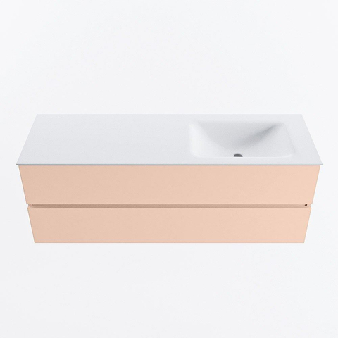 MONDIAZ VICA Ensemble meuble de salle de bains - 140cm - meuble bas rosee - 2 tiroirs - lavabo cloud à droite - sans trous de robinet - version haute 60cm - talc