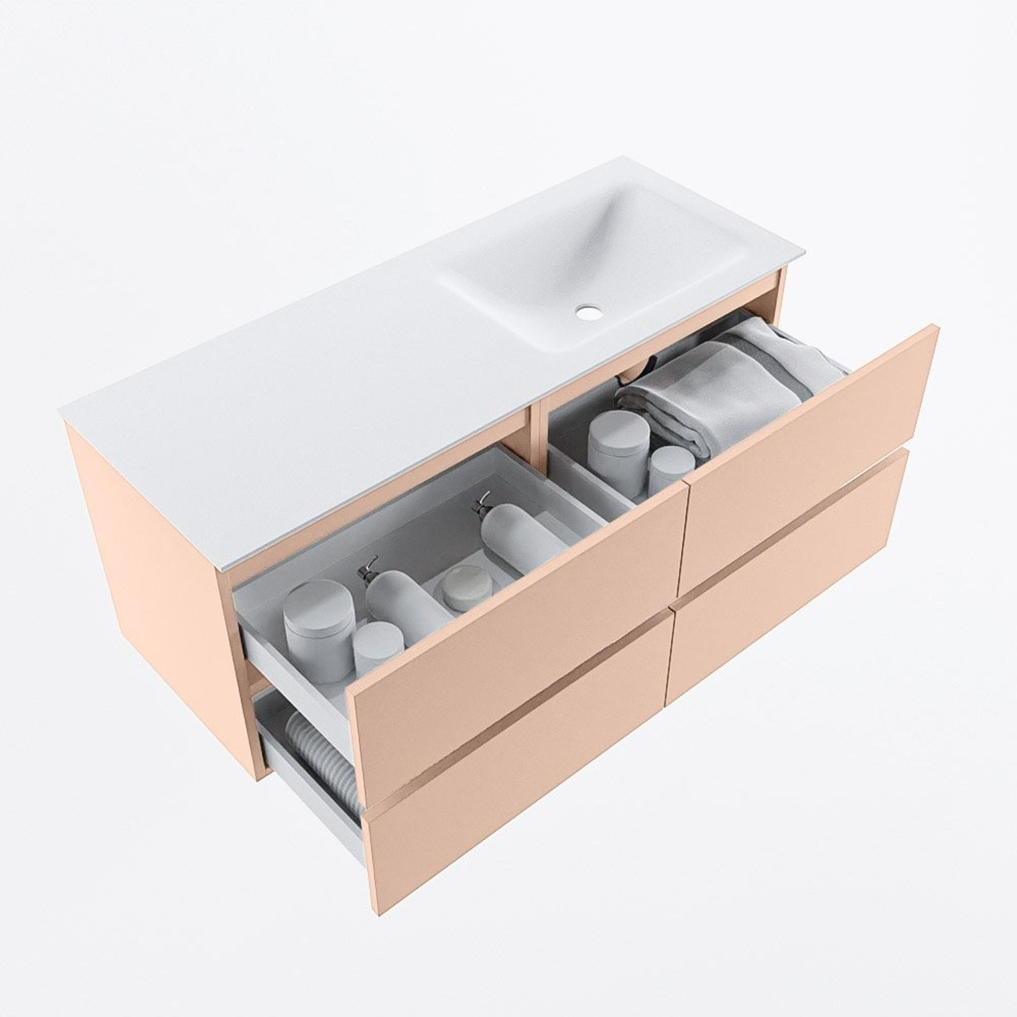 Mondiaz VICA Ensemble de meuble de salle de bain - 120cm - meuble sous lavabo rosee - 4 tiroirs - lavabo cloud droite - 1 trou de robinet - version haute de 60cm - talc