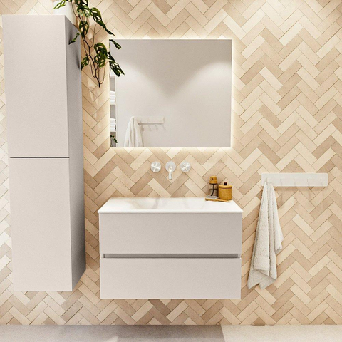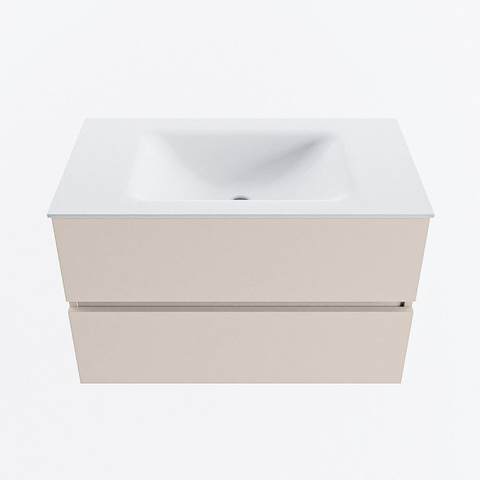 MONDIAZ VICA Ensemble meuble de salle de bains - 80cm - meuble bas linen - 2 tiroirs - vasque cloud au centre - sans trous de robinet - version haute 60cm - talc
