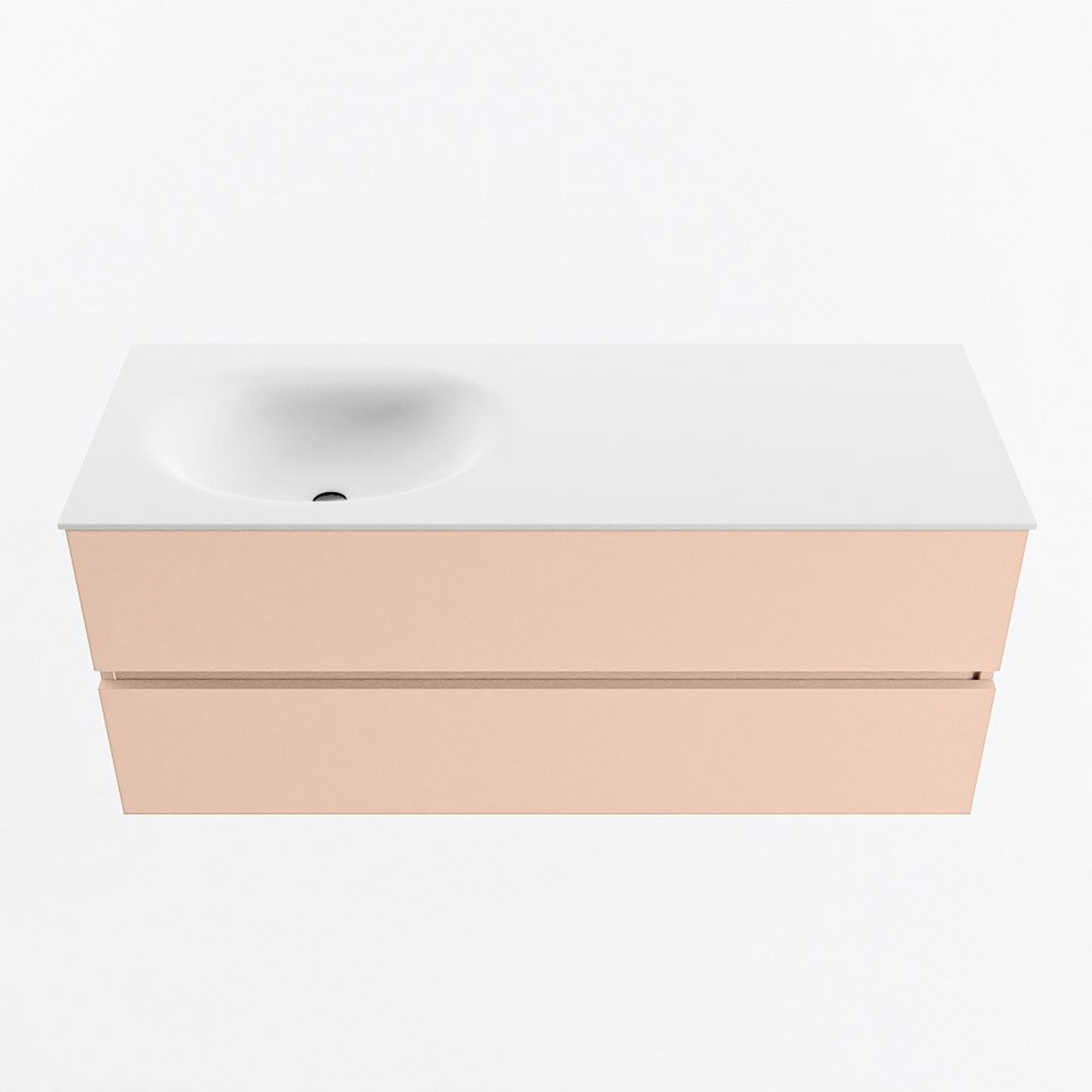 MONDIAZ VICA Ensemble meuble de salle de bains - 120cm - meuble sous-vasque rosee - 2 tiroirs - lavabo moon gauche - sans trous de robinet - version hauteur 60cm - talc