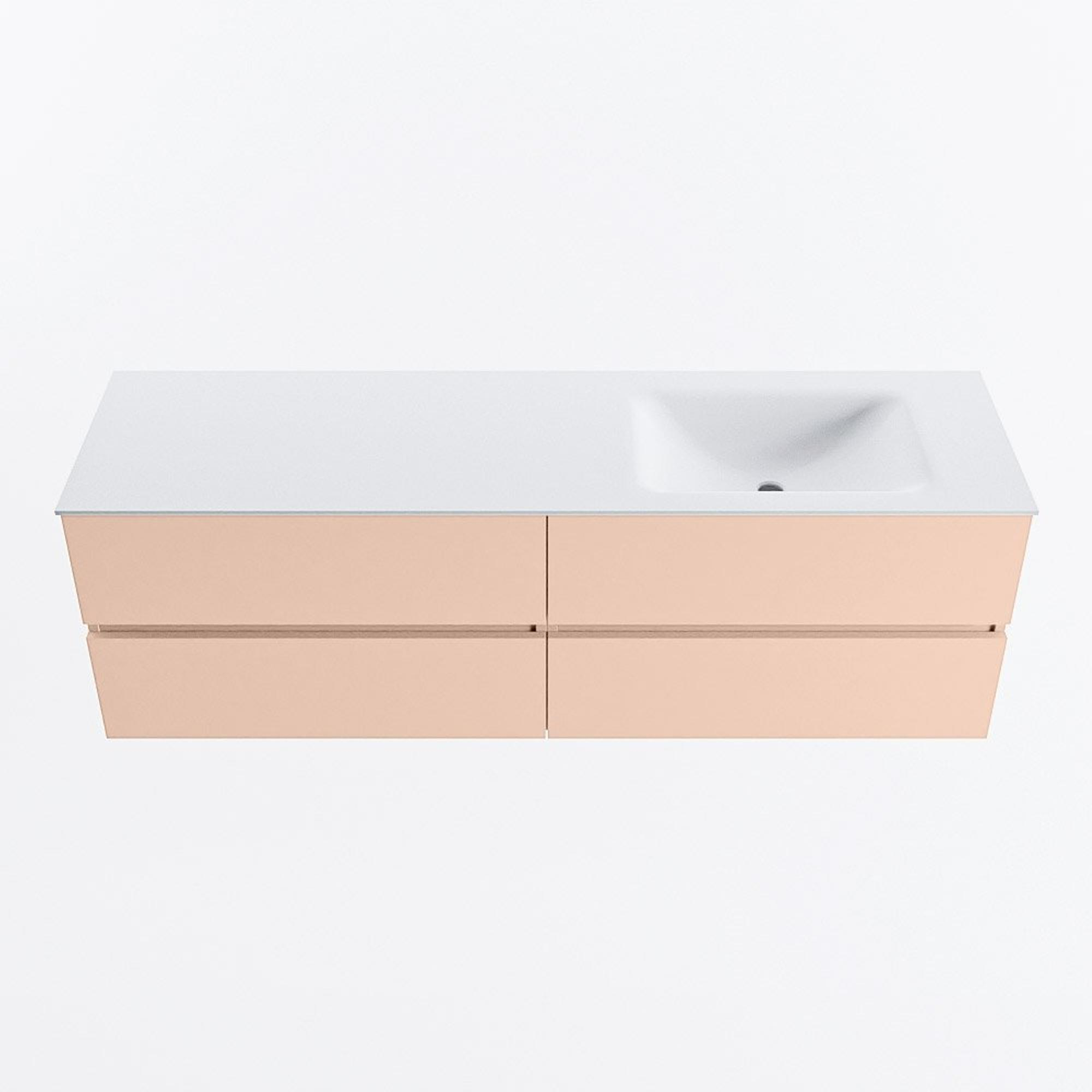 MONDIAZ Vica Ensemble meuble de salle de bains - 160cm - meuble bas rosee - 4 tiroirs - lavabo cloud à droite - sans trous de robinet - version haute 60cm - talc