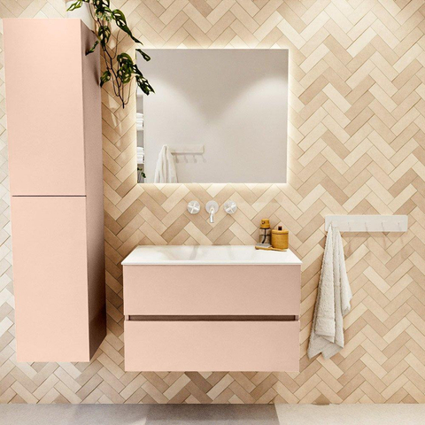 MONDIAZ VICA Ensemble meuble de salle de bains - 80cm - meuble bas rosee - 2 tiroirs - lavabo cloud central - sans trous de robinet - version haute 60cm - talc