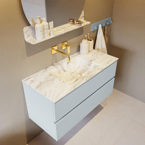MONDIAZ VICA-DLUX Ensemble meuble de salle de bains - 100cm - meuble bas clay - 2 tiroirs - lavabo encastré cloud au milieu - sans trous de robinetterie - version haute 60cm - glace