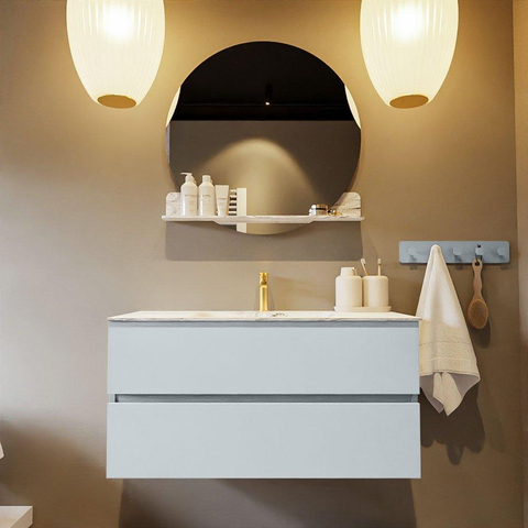 MONDIAZ VICA-DLUX Ensemble meuble de salle de bains - 100cm - meuble bas clay - 2 tiroirs - lavabo encastré cloud central - 1 trou de robinet - version haute 60cm - glace