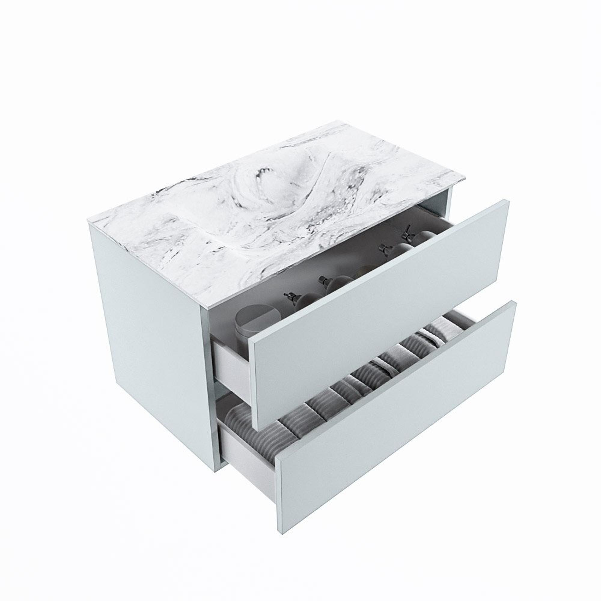 MONDIAZ VICA-DLUX Ensemble meuble de salle de bains - 80cm - meuble bas clay - 2 tiroirs - lavabo encastré cloud central - sans trous de robinet - version haute 60cm - glace