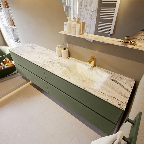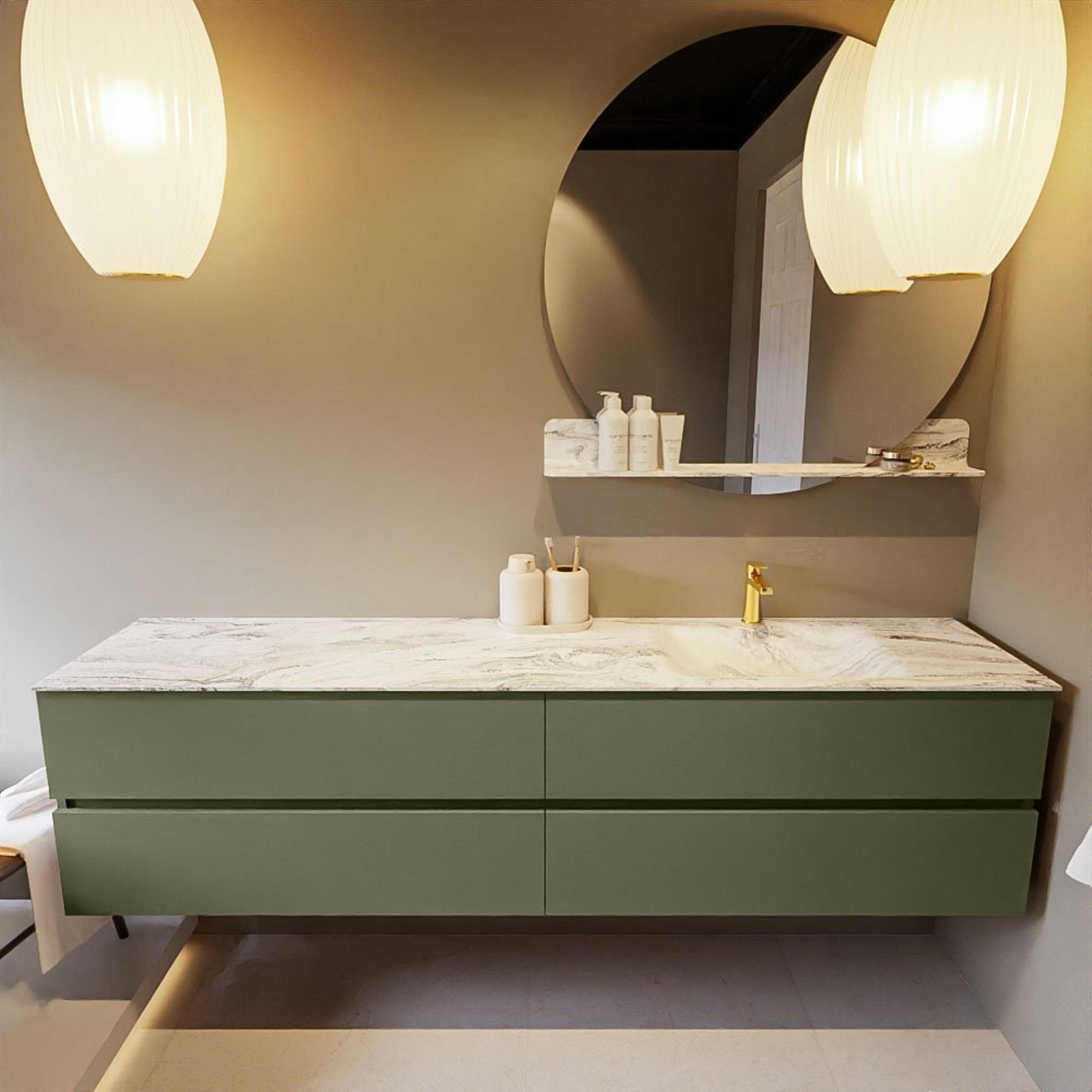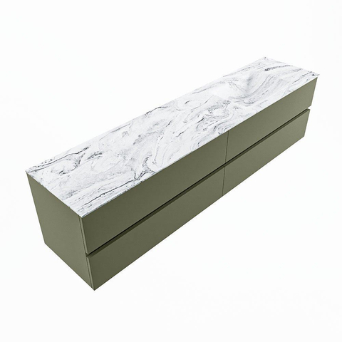 MONDIAZ VICA-DLUX Ensemble meuble de salle de bains - 200cm - meuble bas army - 4 tiroirs - lavabo encastré cloud à droite - 1 trou de robinet - version haute 60cm - glace