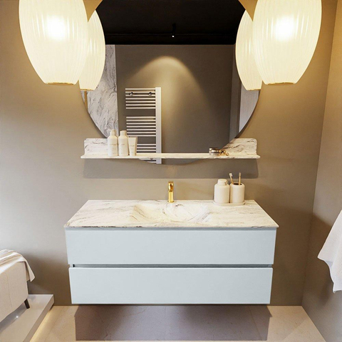 MONDIAZ VICA-DLUX Ensemble meuble de salle de bains - 120cm - meuble sous-vasque clay - 2 tiroirs - lavabo encastré cloud centré - 1 trou de robinet - version haute 60cm - glace