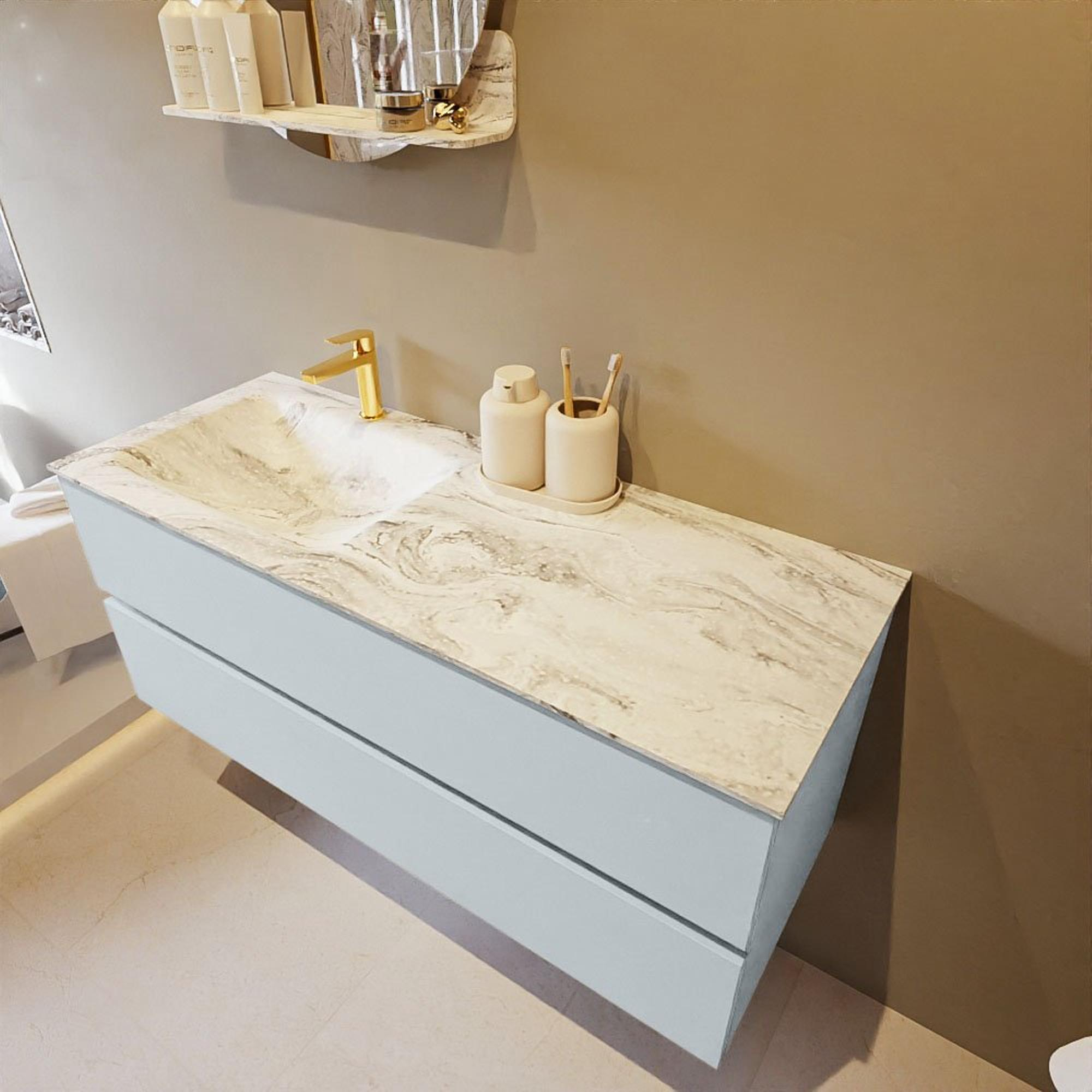 Mondiaz VICA-DLUX Ensemble de meuble de salle de bain - 120cm - meuble sous-vasque argile - 2 tiroirs - lavabo encastré nuage gauche - 1 trou de robinet - version haute de 60cm - glace