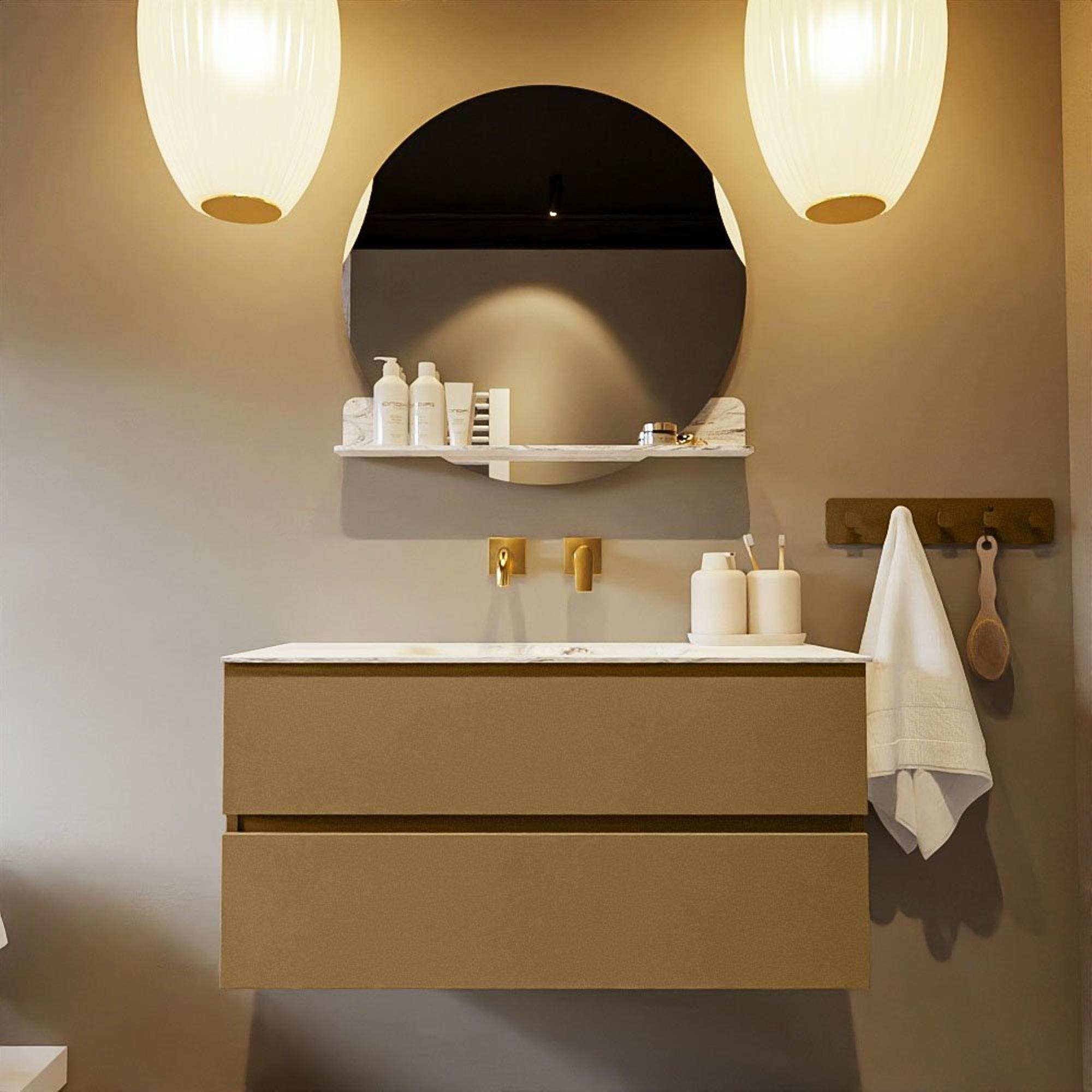 MONDIAZ VICA-DLUX Ensemble meuble de salle de bains - 100cm - meuble bas oro - 2 tiroirs - lavabo encastré cloud au milieu - sans trous de robinet - version haute 60cm - glace