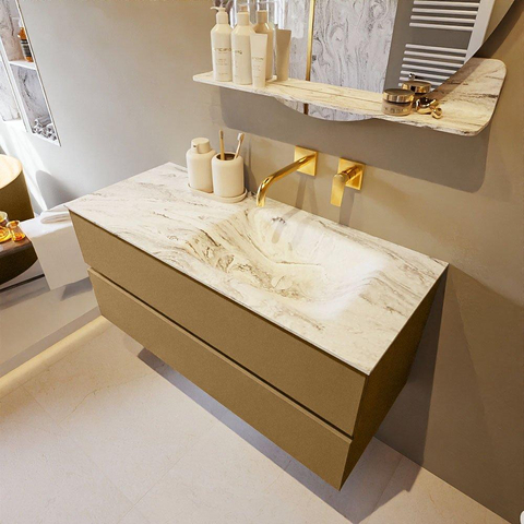 MONDIAZ VICA-DLUX Ensemble meuble de salle de bains - 110cm - meuble bas oro - 2 tiroirs - lavabo encastré cloud à droite - sans trous de robinetterie - version haute 60cm - glace