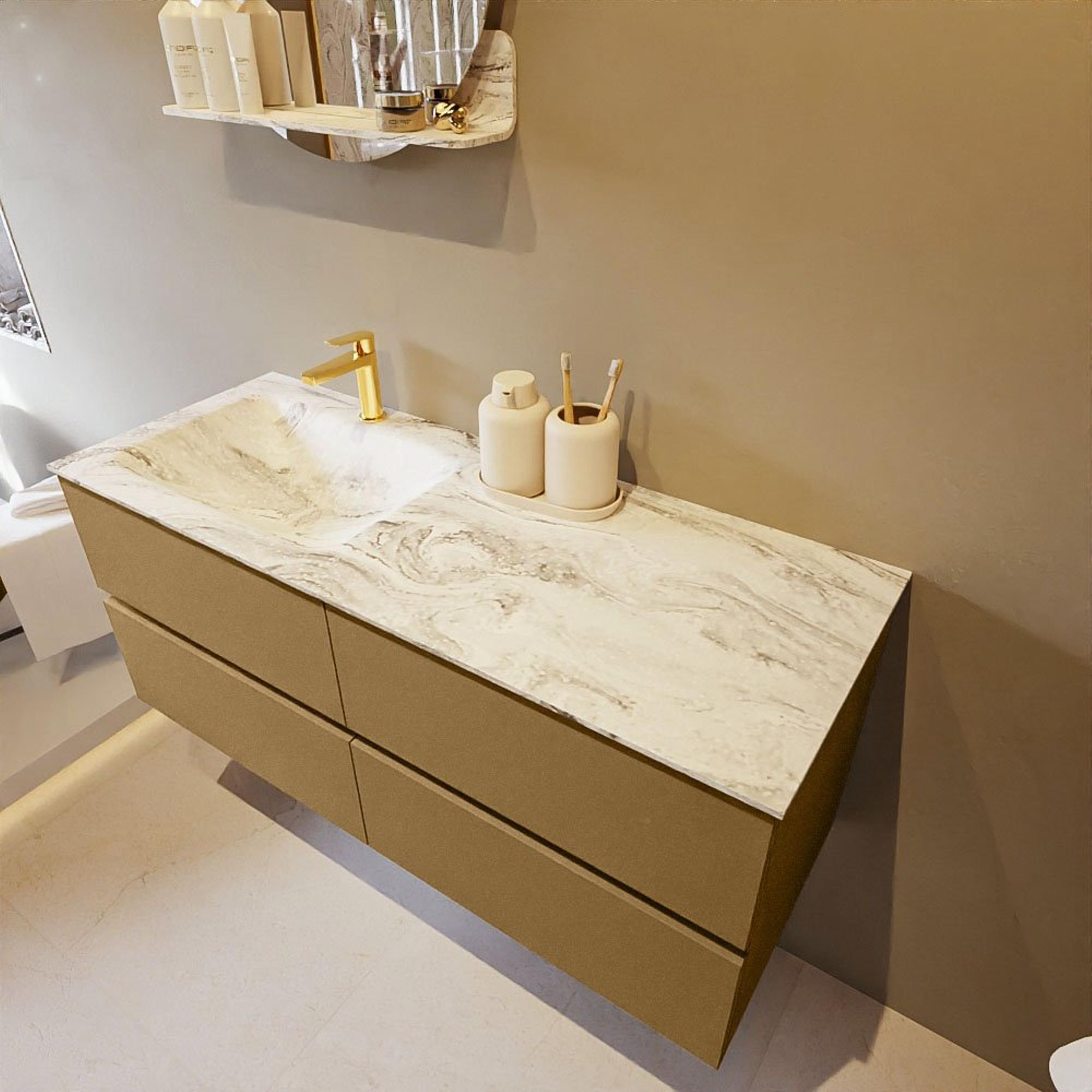 MONDIAZ VICA-DLUX Ensemble meuble de salle de bains - 120cm - meuble bas oro - 4 tiroirs - vasque encastrée cloud à gauche - 1 trou de robinet - version haute 60cm - glace