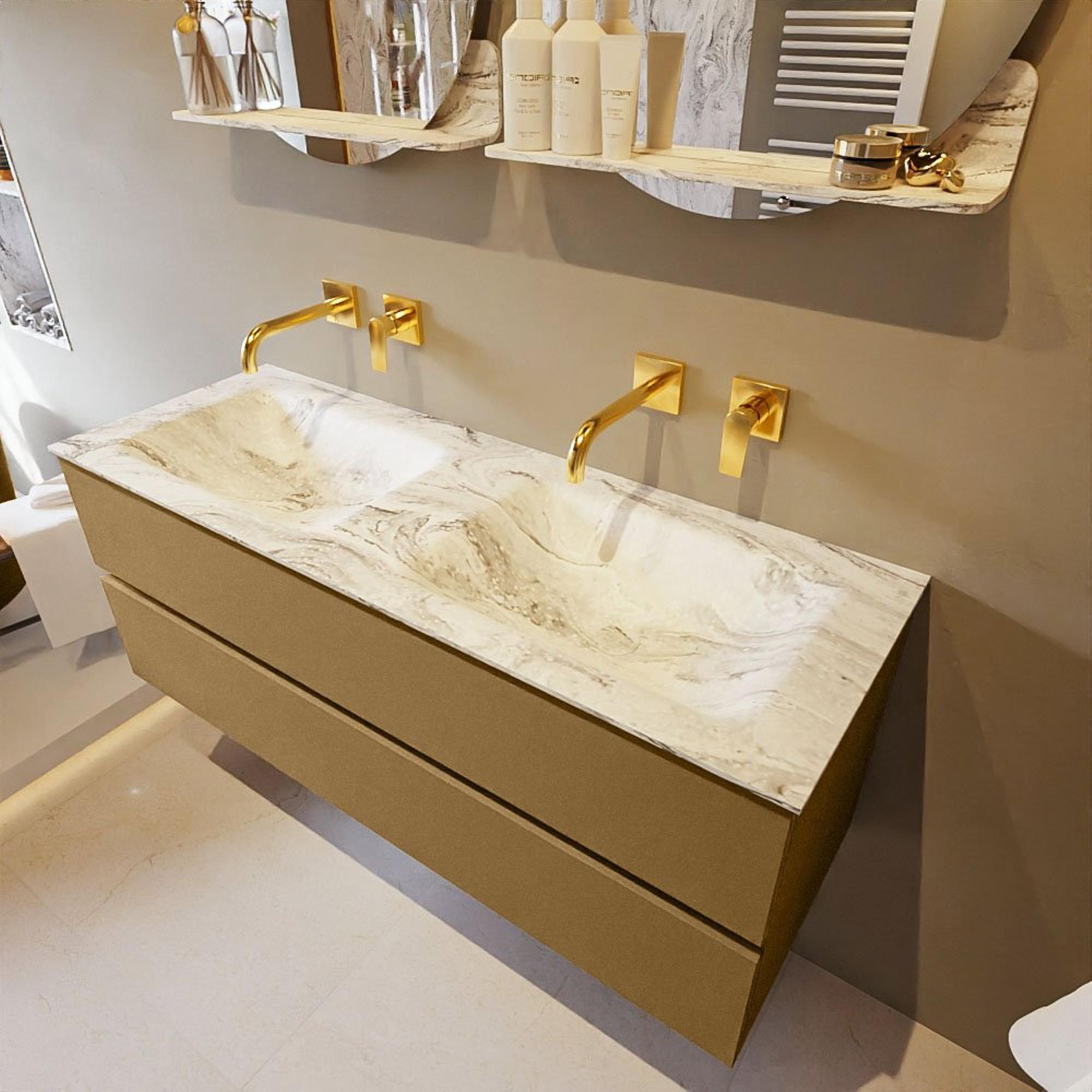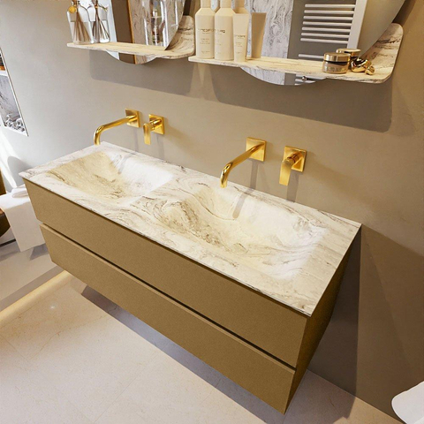MONDIAZ VICA-DLUX Ensemble meuble de salle de bains - 130cm - meuble bas oro - 2 tiroirs - lavabo encastré cloud double - sans trous de robinet - version haute 60cm - glace