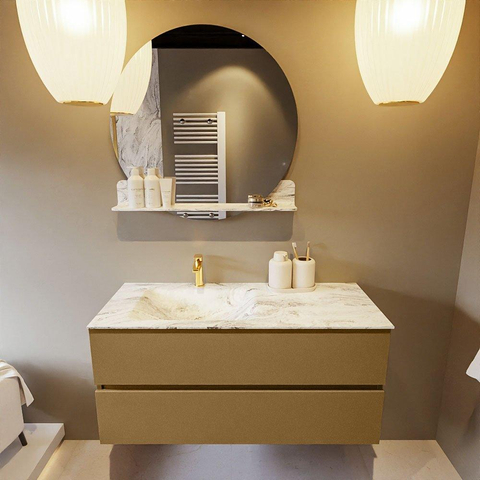 MONDIAZ VICA-DLUX Ensemble meuble de salle de bains - 110cm - meuble bas oro - 2 tiroirs - lavabo encastré cloud gauche - 1 trou de robinet - version haute 60cm - glace
