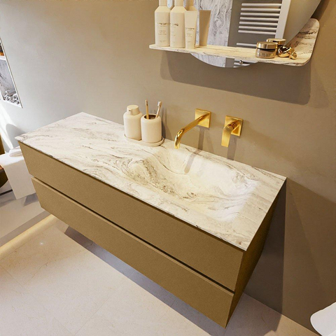 MONDIAZ VICA-DLUX Ensemble meuble de salle de bains - 130cm - meuble bas oro - 2 tiroirs - lavabo encastré cloud à droite - sans trous de robinet - version hauteur 60cm - glace