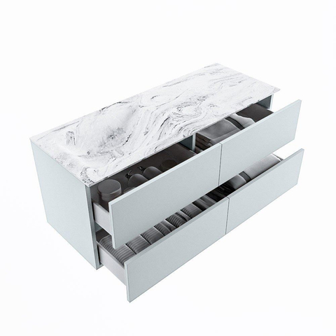 Le très beau set de meuble de salle de bains VICA DLUX est une splendide pièce maîtresse dans votre salle de bains. Le lavabo Solid surface marbré en CORIAN a une apparence élégante et intemporelle. Grâce à la forme douce et naturelle du lavabo, combinée avec le meuble bas de salle de bains intemporel et magnifique, le VICA-DLUX s’adapte bien aux différents styles de salles de bains. Pour finaliser entièrement le style de votre salle de bains, nous avons également les niches et les supports de miroir dans la même couleur que le lavabo. Comme les niches Mondiaz et les tablettes de miroir. La série VICA DLUX se compose du meuble bas VICA à 2 ou 4 tiroirs, combiné avec un lavabo Solid surface CORIAN à structure marbre. Le lavabo Solid surface CORIAN est disponible en 5 aspects marbre. Avec cet ensemble de meuble de salle de bains, vous avez la belle apparence du marbre tout en bénéficiant également de la facilité d’entretien et de l’hygiène du Solid surface. Attention : pour la variante XL (60cm), vous voyez les images/vidéos de la hauteur standard (50cm)
