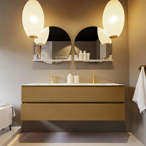 MONDIAZ VICA-DLUX Ensemble meuble de salle de bains - 150cm - meuble bas oro - 2 tiroirs - lavabo encastré cloud double - 2 trous de robinet - version haute 60cm - glace