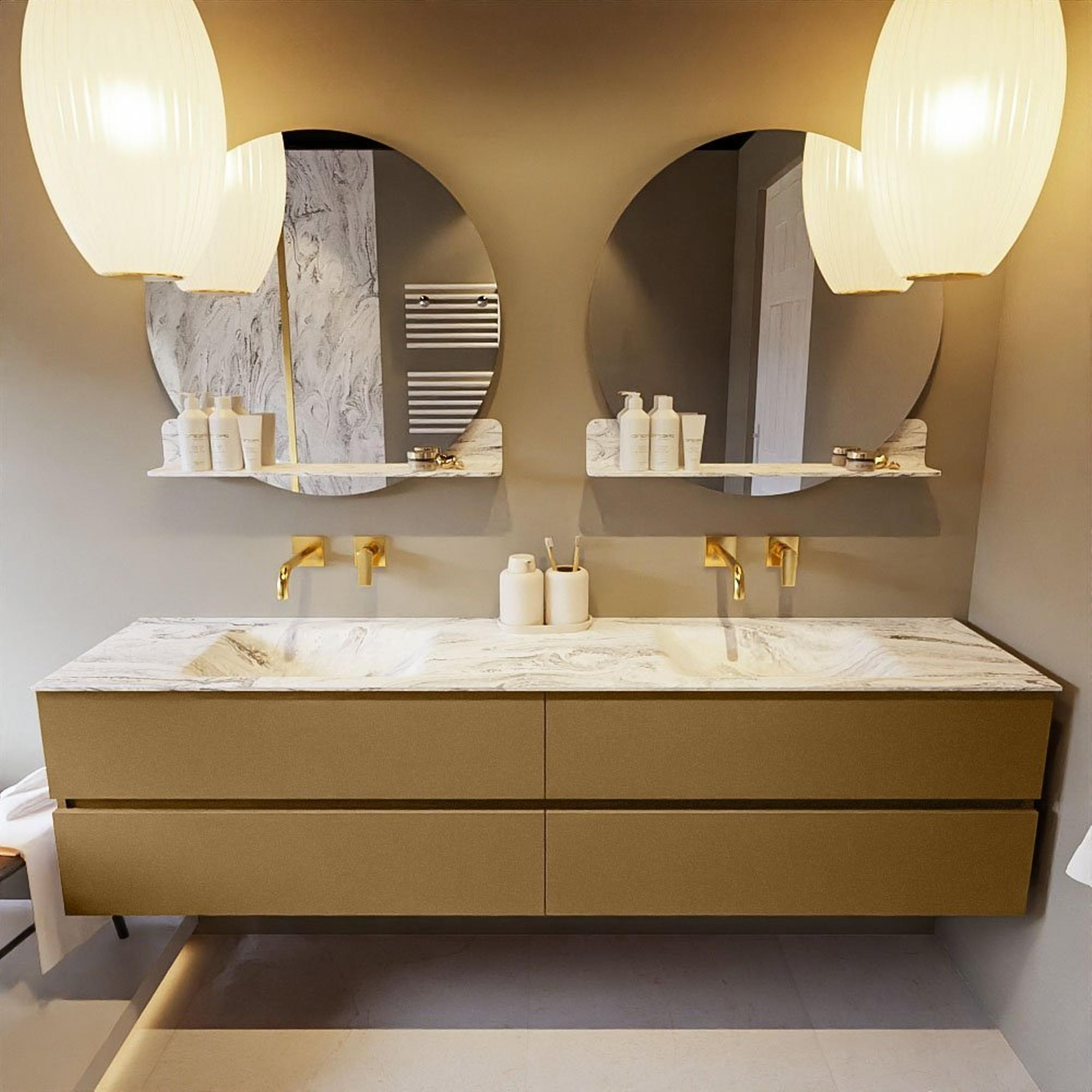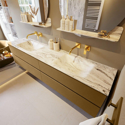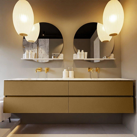 MONDIAZ VICA-DLUX Ensemble meuble de salle de bains - 200cm - meuble bas oro - 4 tiroirs - lavabo encastré cloud double - sans trous de robinet - version haute 60cm - glace
