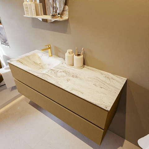 MONDIAZ VICA-DLUX Ensemble meuble de salle de bains - 130cm - meuble bas oro - 2 tiroirs - lavabo encastré cloud gauche - 1 trou de robinet - version haute 60cm - glace