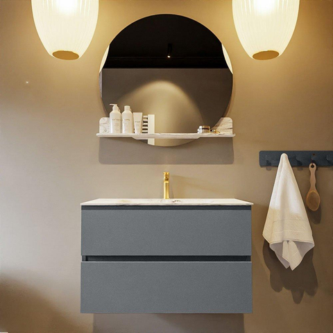 MONDIAZ VICA-DLUX Ensemble meuble de salle de bains - 80cm - meuble bas plata - 2 tiroirs - lavabo encastré cloud central - 1 trou de robinet - version haute 60cm - glace