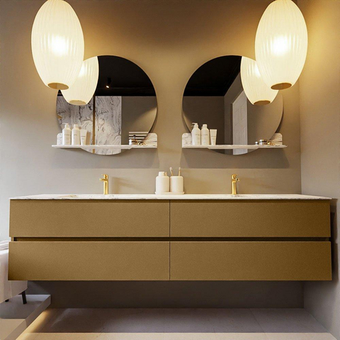 MONDIAZ VICA-DLUX Ensemble meuble de salle de bains - 200cm - meuble bas oro - 4 tiroirs - lavabo encastré cloud double - 2 trous de robinet - version haute 60cm - glace