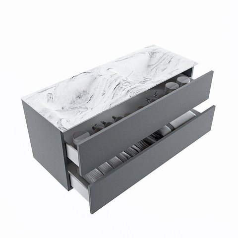 MONDIAZ VICA-DLUX Ensemble meuble de salle de bains - 120cm - meuble bas plata - 2 tiroirs - lavabo encastré cloud double - 2 trous de robinet - version haute 60cm - glace