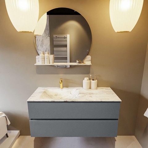 MONDIAZ VICA-DLUX Ensemble meuble de salle de bains - 110cm - sous-meuble plata - 2 tiroirs - lavabo encastré cloud à gauche - 1 trou de robinet - version haute 60cm - glace