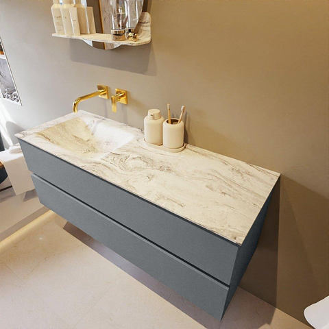 MONDIAZ VICA-DLUX Ensemble meuble de salle de bains - 130cm - sous-meuble plata - 2 tiroirs - lavabo encastré cloud gauche - sans trous de robinet - version haute 60cm - glace