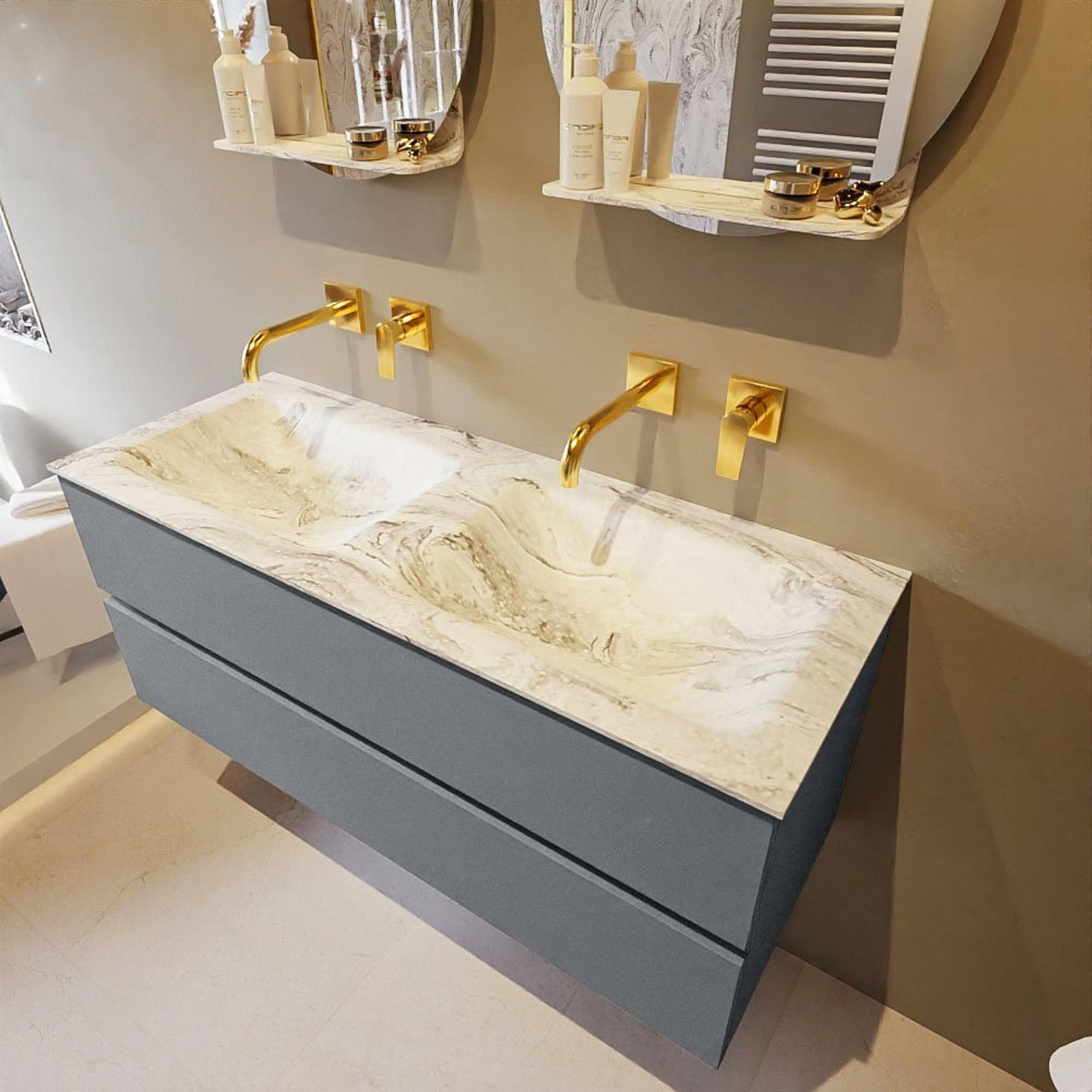 MONDIAZ VICA-DLUX Ensemble meuble de salle de bains - 120cm - meuble bas plata - 2 tiroirs - lavabo encastré cloud double - sans trous de robinet - version haute 60cm - glace