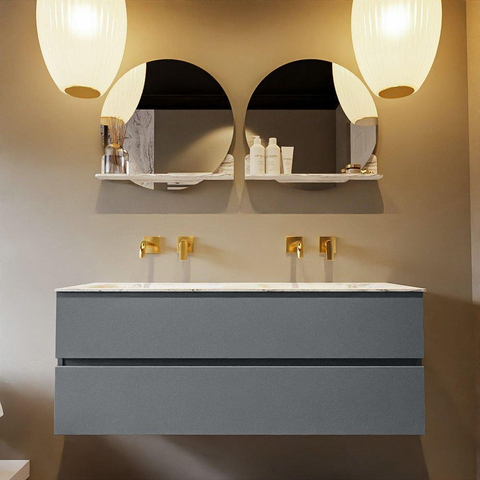 MONDIAZ VICA-DLUX Ensemble meuble de salle de bains - 130cm - meuble bas Plata - 2 tiroirs - lavabo encastré Cloud double - sans trous de robinet - version haute 60cm - Glace