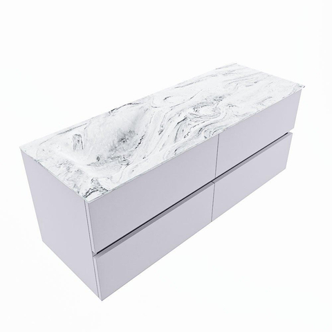 MONDIAZ VICA-DLUX Ensemble meuble de salle de bains - 130cm - meuble sous-vasque cale - 4 tiroirs - lavabo encastré cloud gauche - sans trous de robinet - version haute 60cm - glace