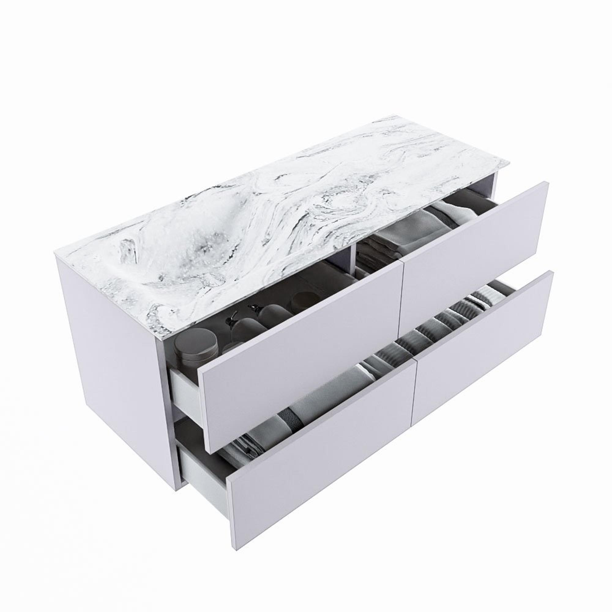 MONDIAZ VICA-DLUX Ensemble meuble de salle de bains - 120cm - meuble bas Cale - 4 tiroirs - vasque encastrée Cloud gauche - 1 trou de robinet - version haute 60cm - Glace
