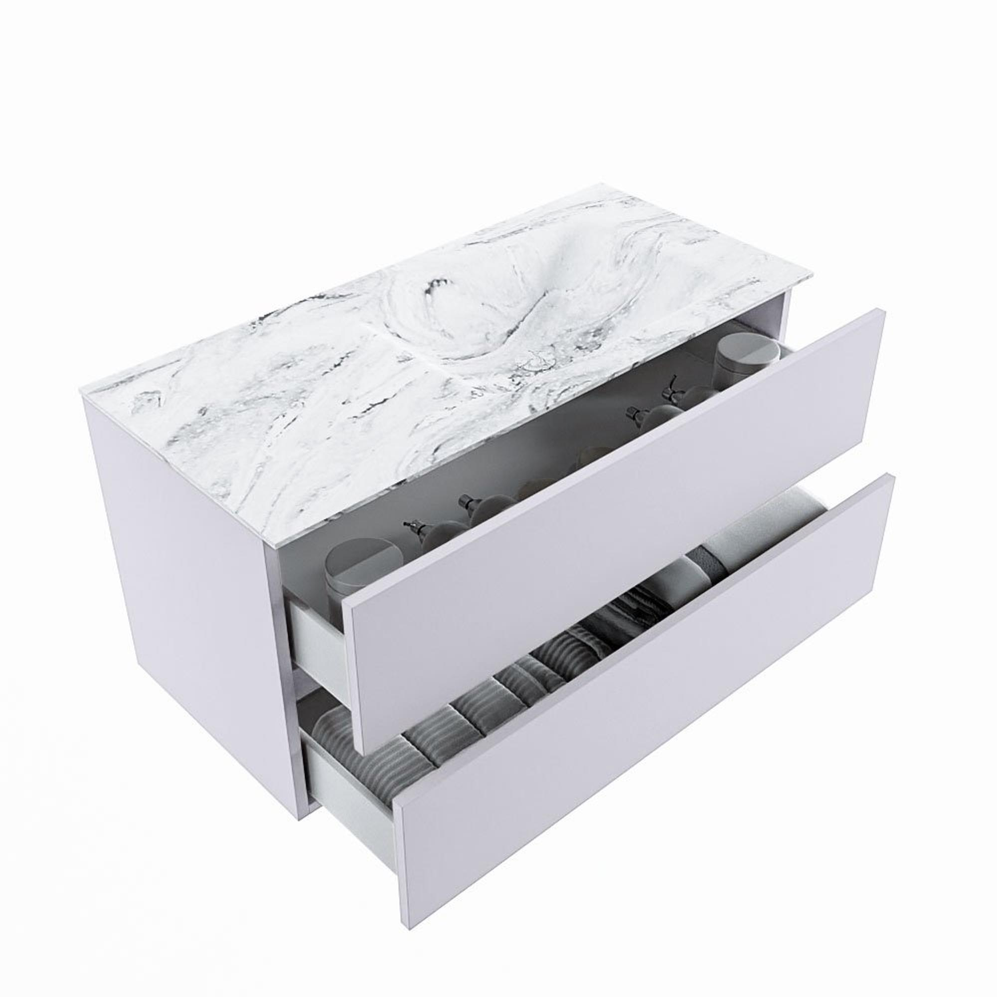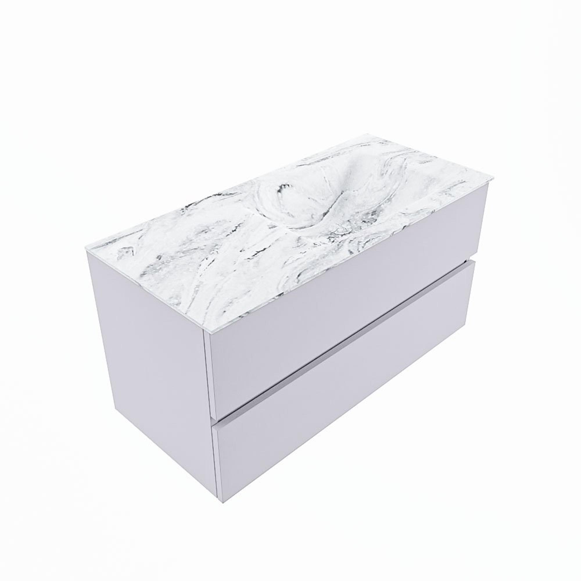 MONDIAZ VICA-DLUX Ensemble meuble de salle de bains - 100cm - meuble bas cale - 2 tiroirs - vasque encastrée cloud droite - sans trous de robinetterie - version haute 60cm - glace