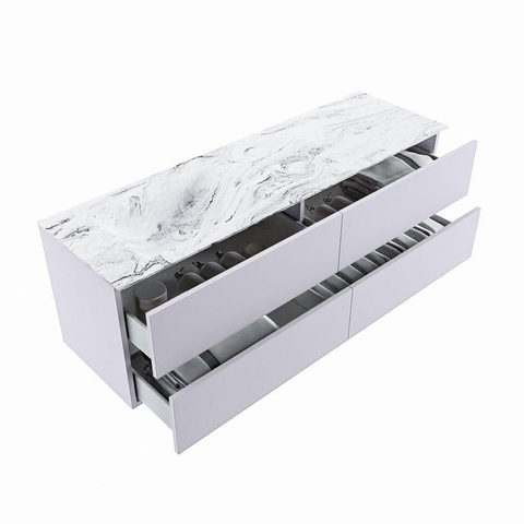 MONDIAZ VICA-DLUX Ensemble meuble de salle de bains - 150cm - meuble bas Cale - 4 tiroirs - lavabo encastré Cloud gauche - sans trous de robinet - version haute 60cm - Glace