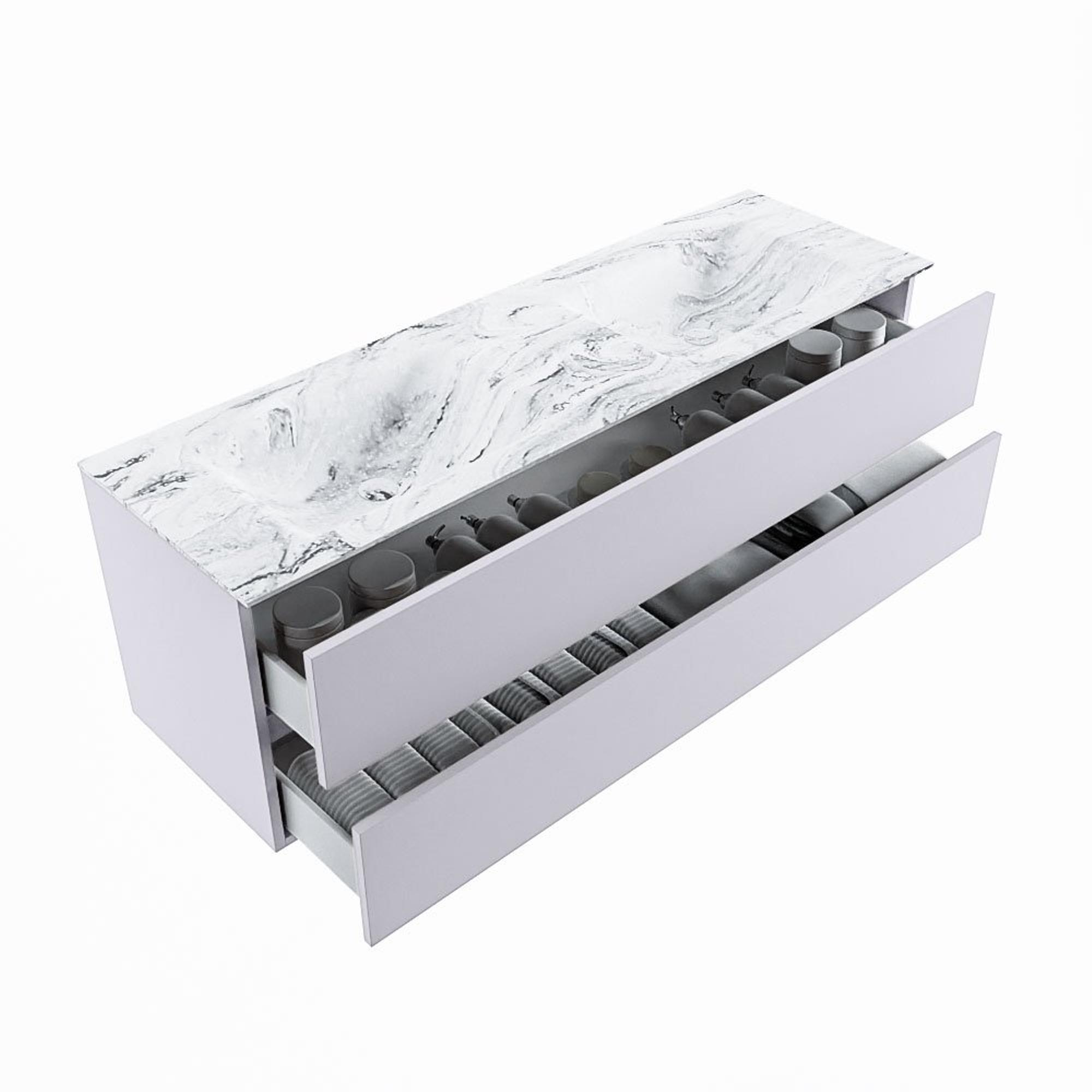 MONDIAZ VICA-DLUX Ensemble meuble de salle de bains - 150cm - sous-meuble Cale - 2 tiroirs - vasque encastrée Cloud double - 2 trous de robinet - version hauteur 60cm - Glace