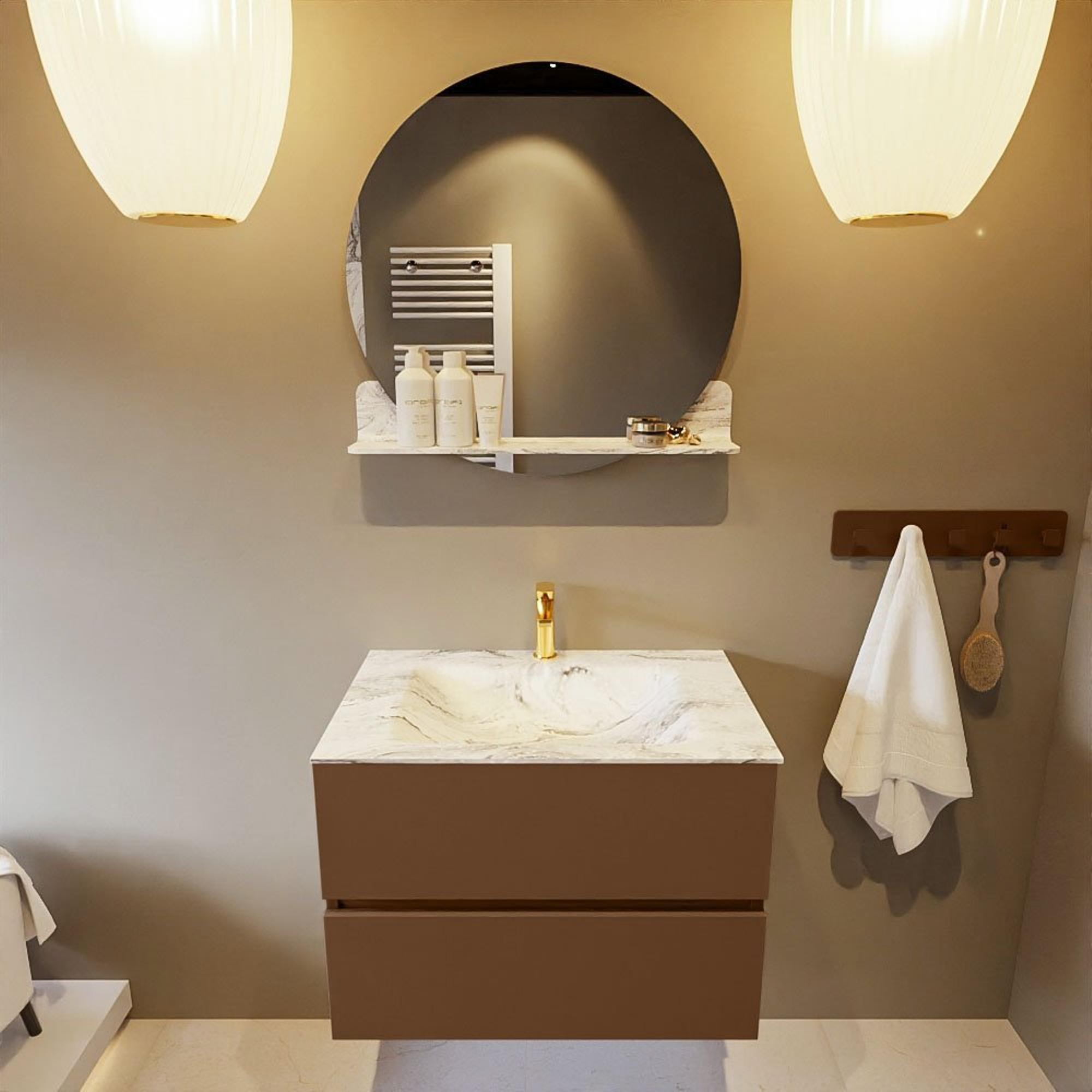 MONDIAZ VICA-DLUX Ensemble meuble de salle de bains - 70cm - meuble bas Rust - 2 tiroirs - lavabo encastré cloud central - 1 trou de robinet - version hauteur 60cm - Glace