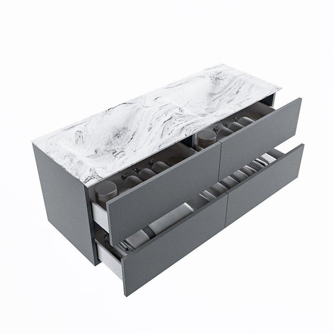 MONDIAZ VICA-DLUX Ensemble meuble de salle de bains - 130cm - meuble bas plata - 4 tiroirs - lavabo encastré cloud double - 2 trous de robinet - version haute 60cm - glace