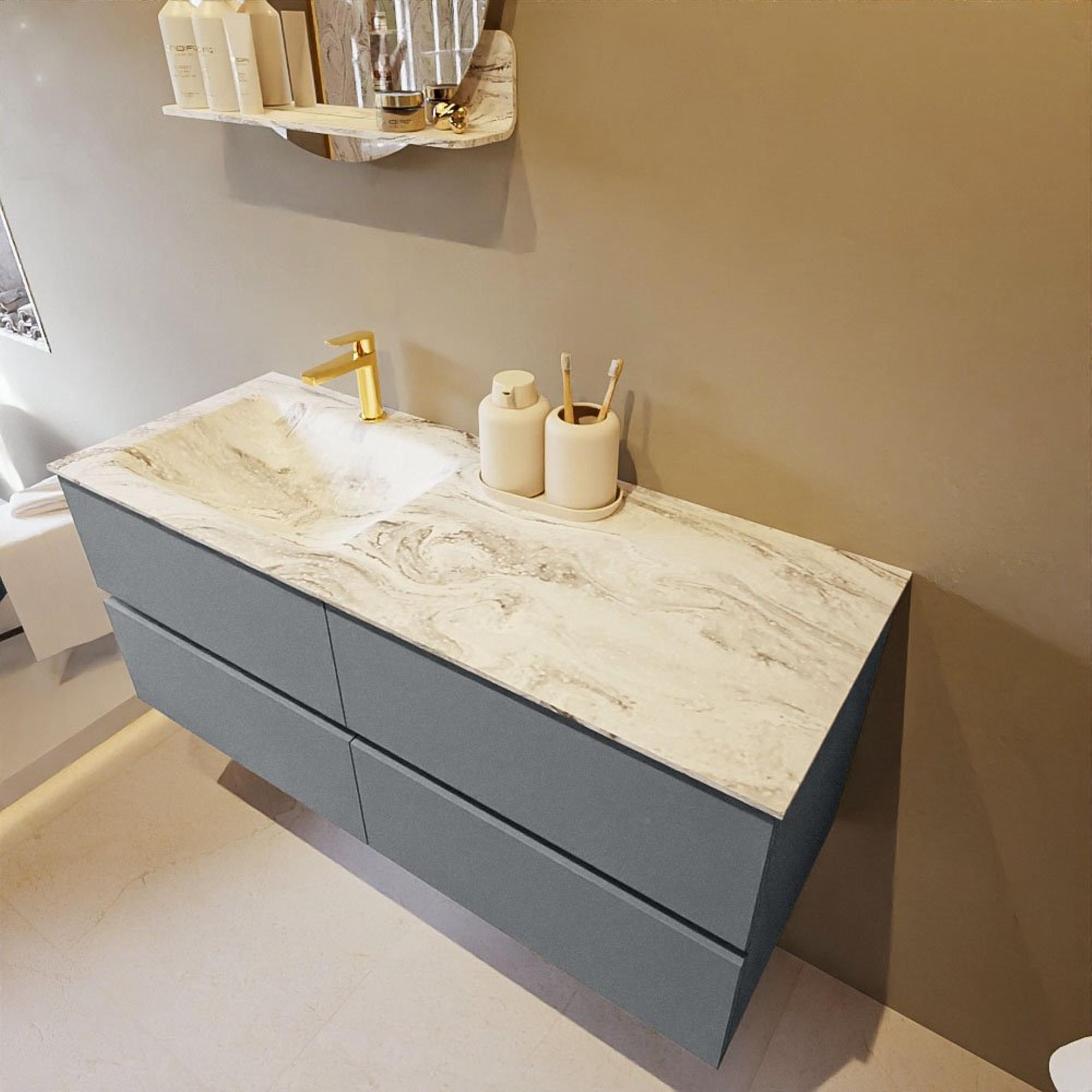 MONDIAZ VICA-DLUX Ensemble meuble de salle de bains - 120cm - meuble bas plata - 4 tiroirs - lavabo encastré cloud à gauche - 1 trou de robinet - version haute 60cm - glace