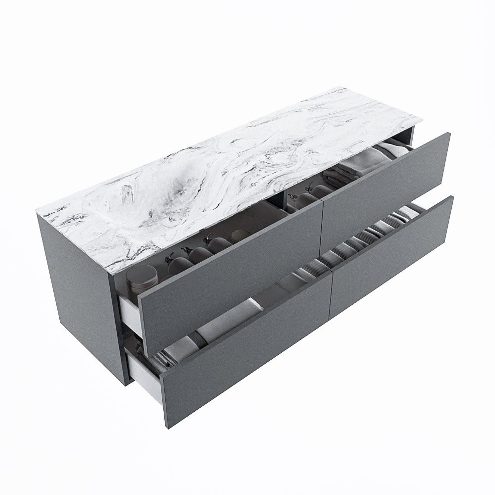 Le très beau set de meuble de salle de bains VICA DLUX est une magnifique pièce maîtresse dans votre salle de bains. Le lavabo en Solid surface marbré de CORIAN a une apparence élégante et intemporelle. Grâce à la forme douce et naturelle du lavabo, combinée avec le meuble bas de salle de bains intemporel et magnifique, le VICA-DLUX s’adapte bien aux différents styles de salles de bains. Pour compléter la décoration de votre salle de bains, nous proposons également les niches et les supports de miroir dans la même couleur que le lavabo. Comme les niches Mondiaz et les tablettes de miroir. La série VICA DLUX se compose du meuble bas VICA à 2 ou 4 tiroirs combiné avec un lavabo en Solid surface CORIAN avec structure marbre. Le lavabo Solid surface CORIAN est disponible en 5 looks marbre. Avec cet ensemble de meuble de salle de bains, vous bénéficiez de cette belle apparence marbre mais également de la facilité d’entretien et de l’hygiène du Solid surface. Attention : pour la variante XL (60cm), vous voyez les images/vidéos de la hauteur standard (50cm).