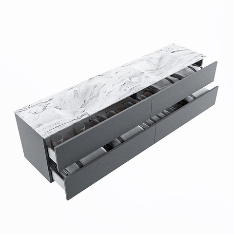MONDIAZ VICA-DLUX Ensemble meuble de salle de bains - 200cm - meuble bas plata - 4 tiroirs - lavabo encastré cloud double - 2 trous de robinet - version hauteur 60cm - glace