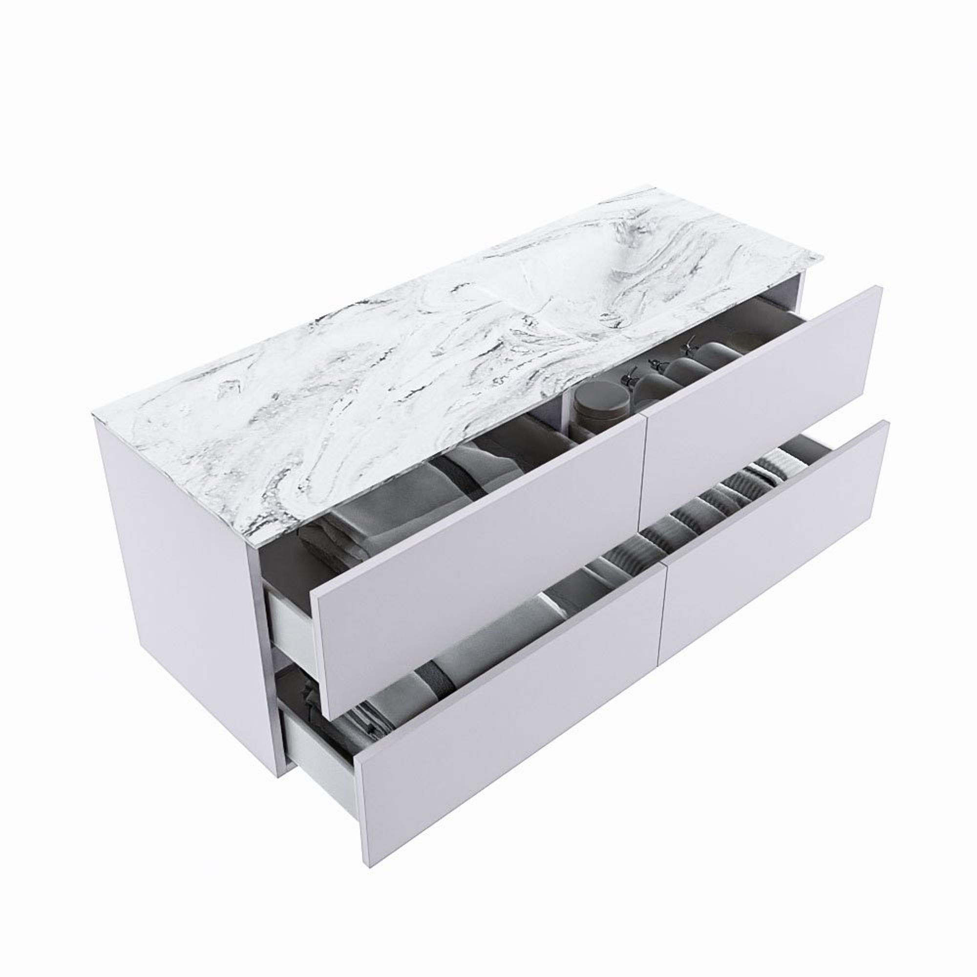 MONDIAZ VICA-DLUX Ensemble meuble de salle de bains - 130cm - meuble bas cale - 4 tiroirs - lavabo encastré cloud à droite - sans trous de robinet - version haute 60cm - glace