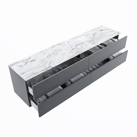 MONDIAZ VICA-DLUX Ensemble meuble de salle de bains - 200cm - meuble bas plata - 4 tiroirs - lavabo encastré cloud à droite - sans trous de robinet - version haute 60cm - glace