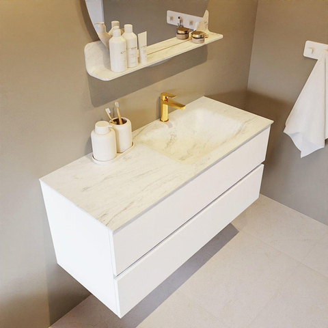 MONDIAZ VICA-DLUX Ensemble meuble de salle de bains - 110cm - sous-meuble talc - 2 tiroirs - lavabo encastré cloud droit - 1 trou de robinet - version haute 60cm - opalo