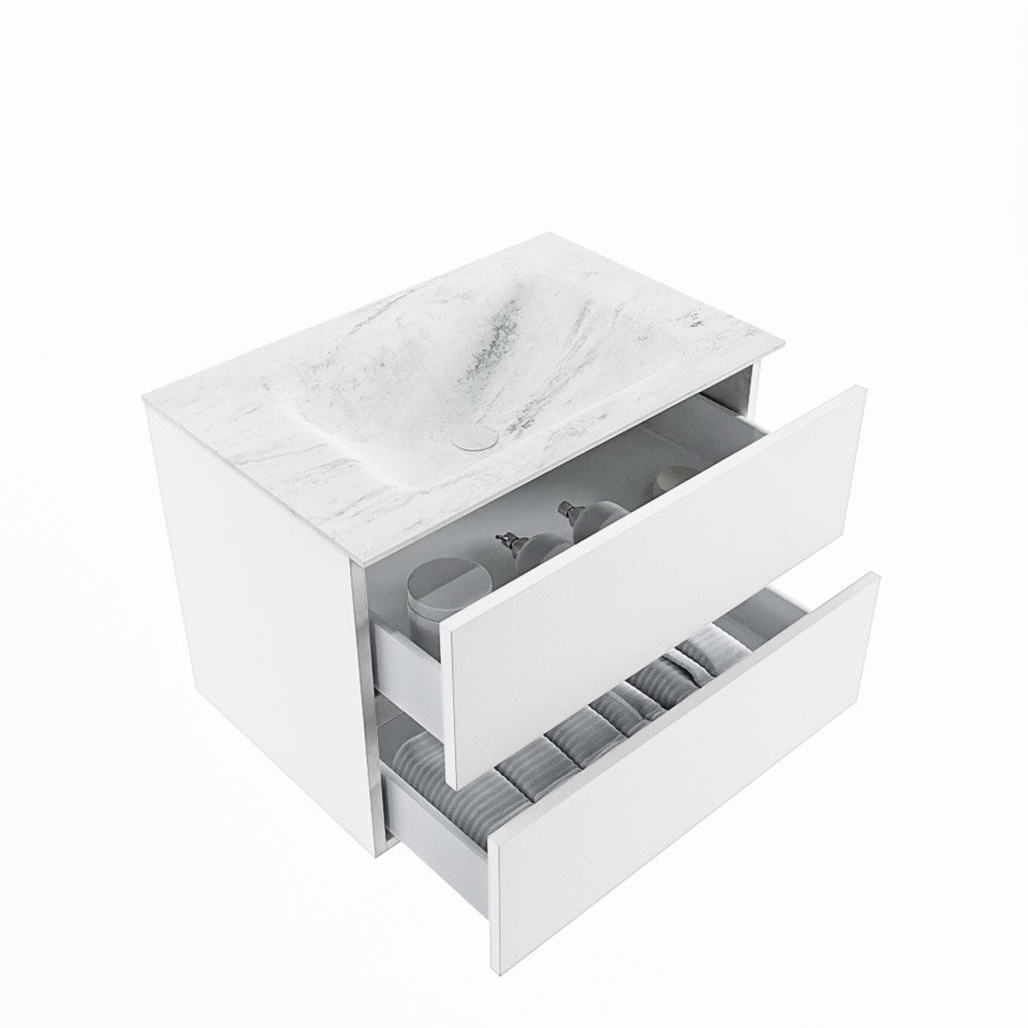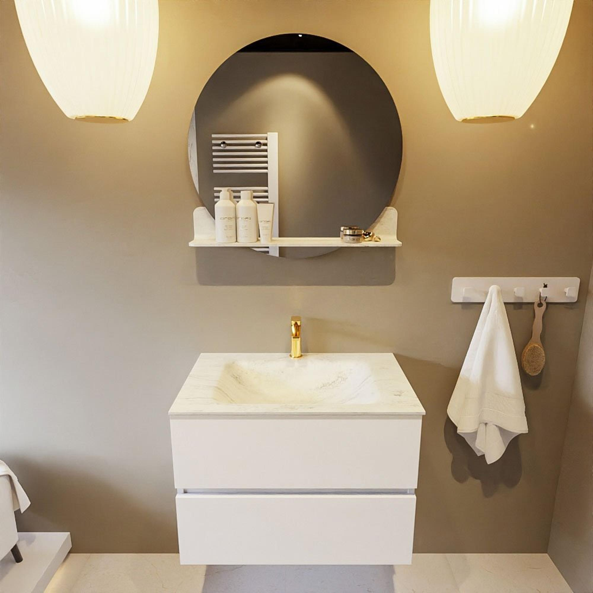 MONDIAZ VICA-DLUX Ensemble meuble de salle de bains - 70cm - meuble sous-vasque talc - 2 tiroirs - lavabo encastré cloud central - 1 trou de robinet - version haute 60cm - opalo