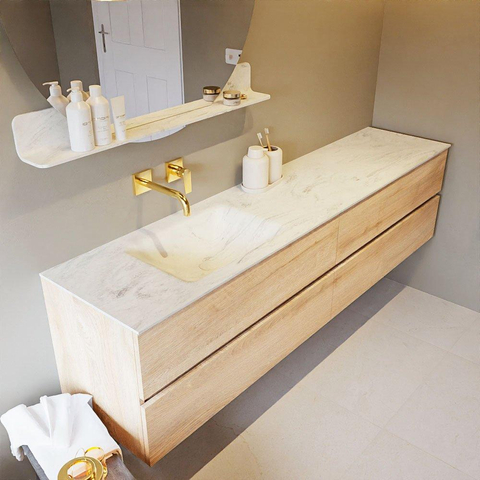 MONDIAZ VICA-DLUX Ensemble meuble de salle de bains - 200cm - meuble bas chêne blanchi - 4 tiroirs - lavabo encastré cloud à gauche - sans trous de robinet - version hauteur 60cm - opalo