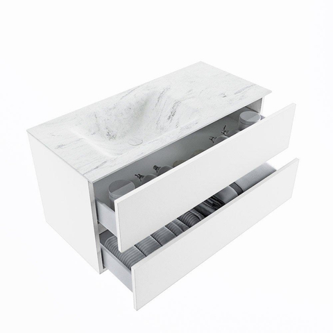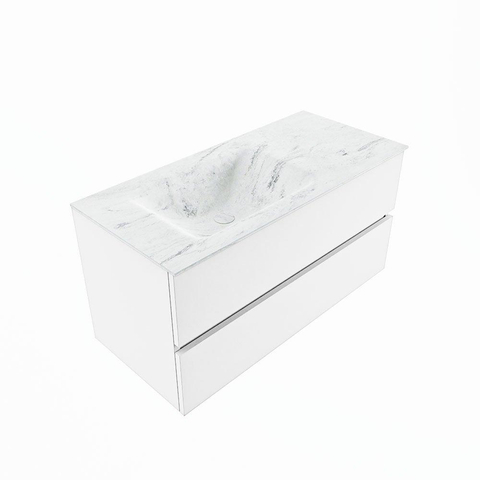 MONDIAZ VICA-DLUX Ensemble meuble de salle de bains - 100cm - meuble bas talc - 2 tiroirs - lavabo encastré cloud gauche - sans trous de robinet - version hauteur 60cm - opalo