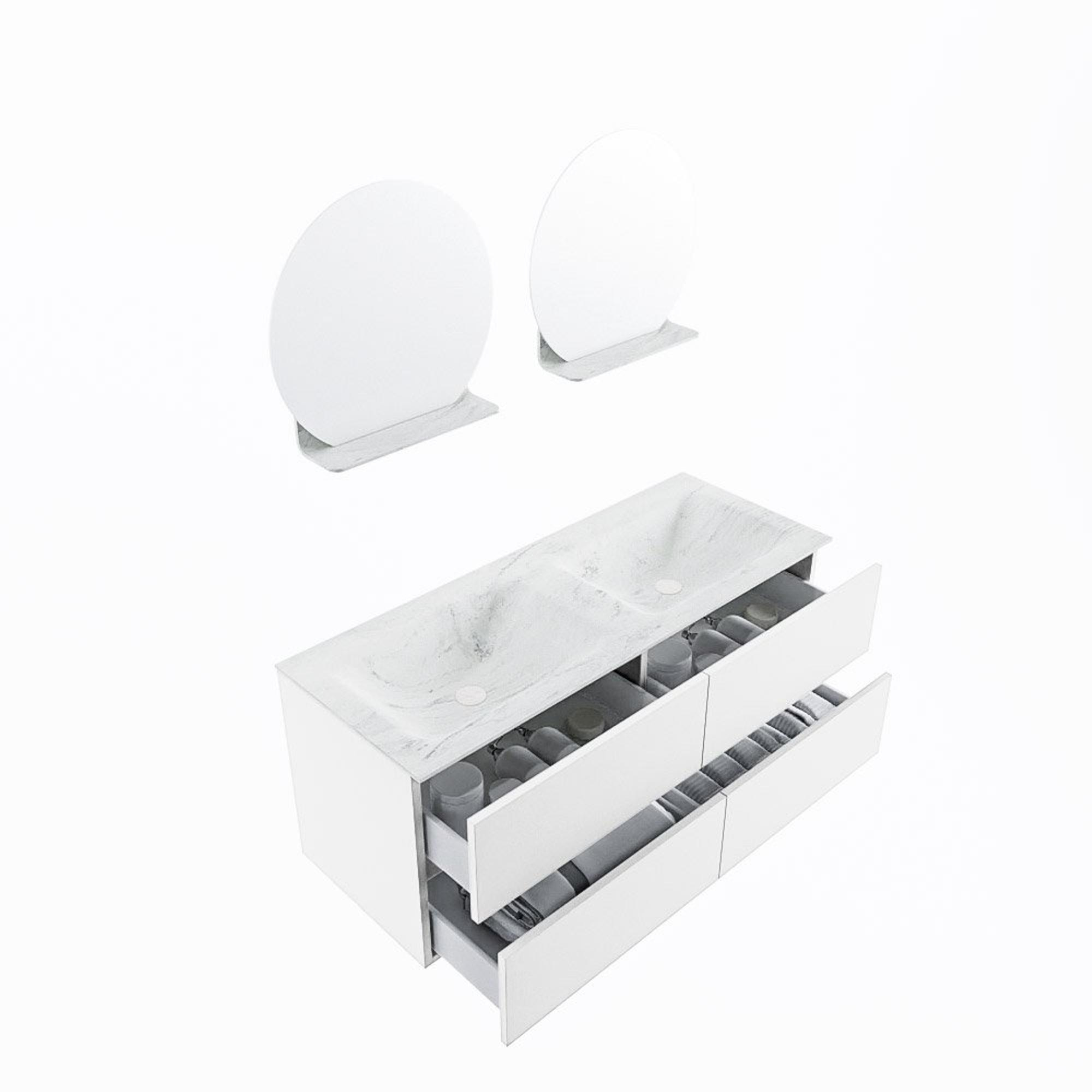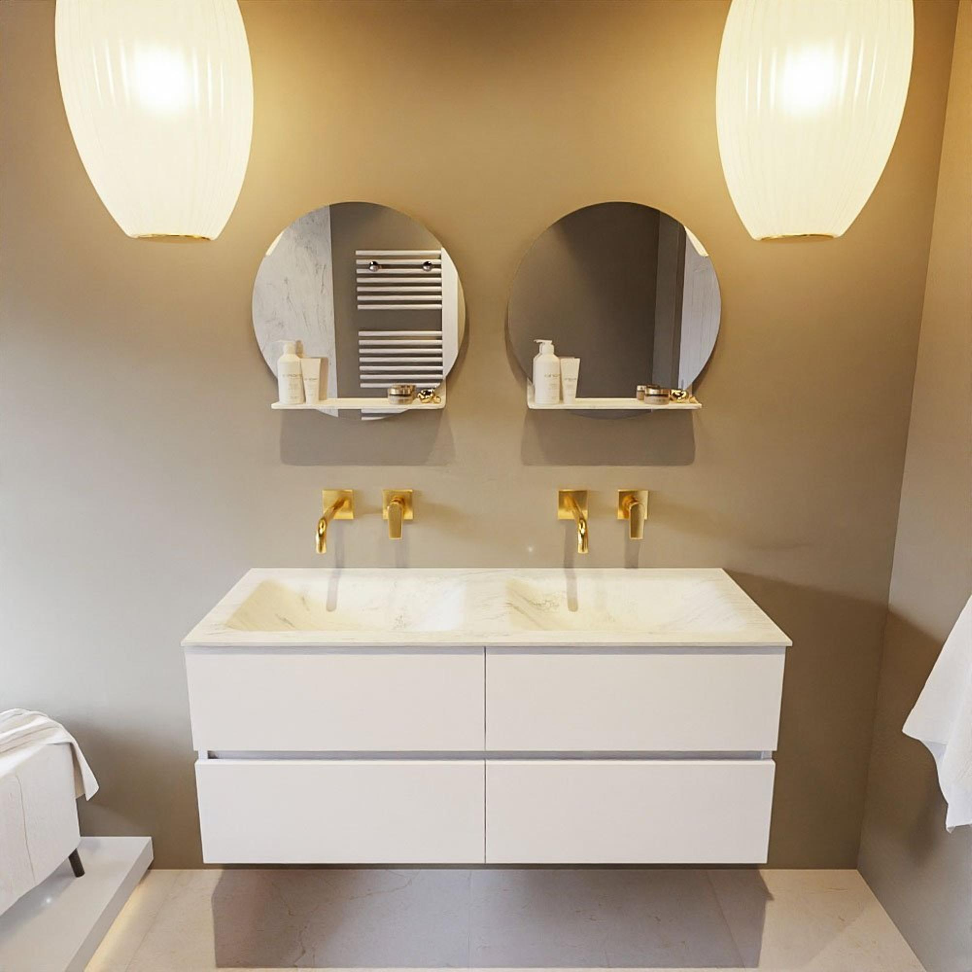 MONDIAZ VICA-DLUX Ensemble meuble de salle de bains - 120cm - meuble bas talc - 4 tiroirs - lavabo encastré cloud double - sans trous de robinet - version haute 60cm - opalo